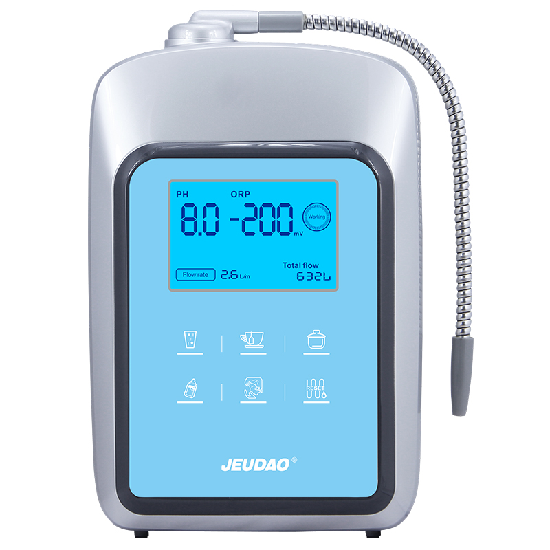 | Product Features | 1. Using Jeudao electrolytic cell, through FDA and ROHS test; 2. Titanium platinum electrode plate developed by Jeudao, the life time is longer than national stander and peer level; 3. Strong electrolysis, meet the global water different condition; 4. Ionic membrane imported from Japan, Strong electrolysis, long life; 5. Constant pH value output technology; 6. Intelligent control system, ease of use; 7. Automatic double cleaning technology; | ||
